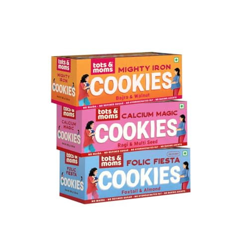 This Combo contains 150 gms of each pack of Millet & Jaggery Cookies - Mighty Iron Folic Fiesta and Calcium Magic. Healthy tasty and nutrient-rich cookies made by using 100% natural ingredients. Good fats carbohydrates and proteins come together in dry fruits seeds and wholesome millet grain Butter & Jaggery bind them together and provide natural sweetness Contains No refined sugar No Maida No Baking powder No Baking soda No Maltodextrin and No eggs. No refined sugars No Maida No Baking powder No Baking soda No Maltodextrin and No eggs. Contains 12-15 cookies per pack.