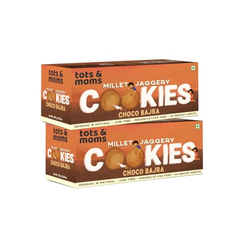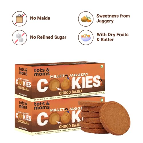 Tots & Moms NO Maida NO Sugar - Choco Bajra Cookies | Millet & Jaggery Biscuits | Pack of 2-150g Each