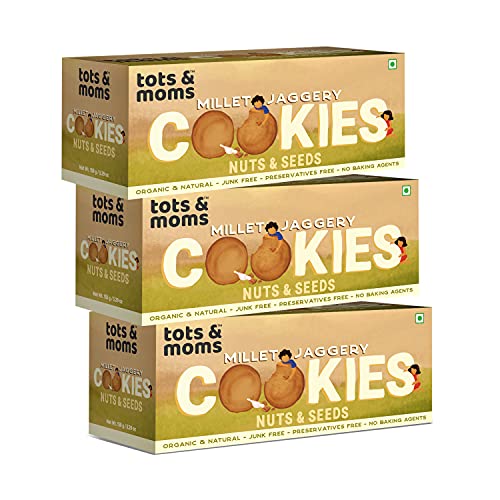 Tots & Moms NO Maida NO Sugar - Nuts & Seeds Cookies | Millet & Jaggery Biscuits for kids | Pack of 3-150g Each