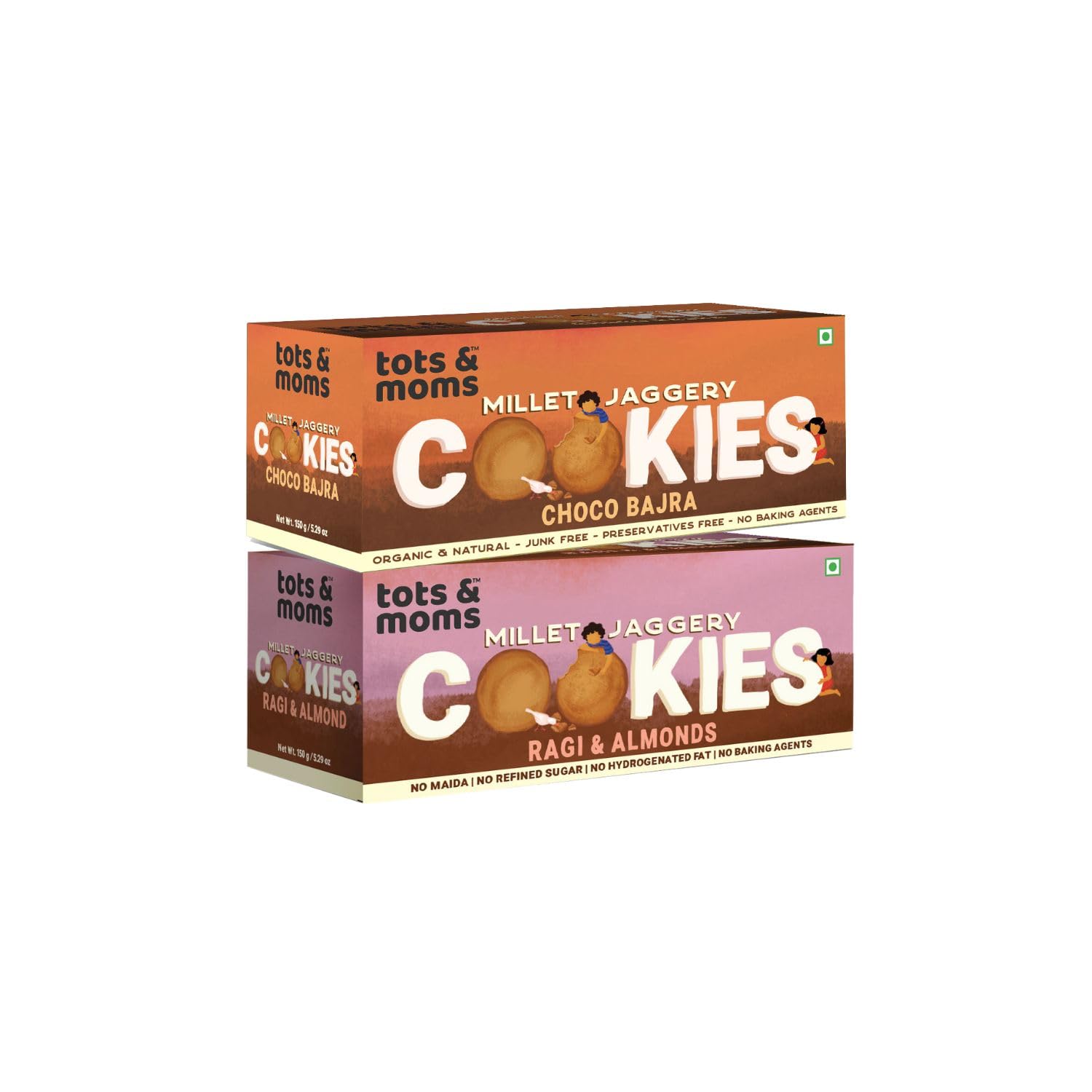 Tots & Moms NO Maida NO Sugar - Ragi & Almond Cookies |Choco Bajra Cookies | Millet & Jaggery Biscuits | Pack of 2-150g Each
