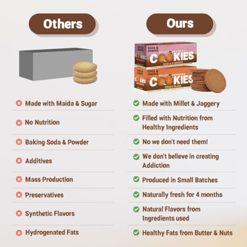 GOODNESS IN EVERY BITE: Enjoy the taste of whole foods without compromise. Dry fruits seeds and whole-grain millet provide good fats carbohydrates and protein making these cookies a nutritional powerhouse.