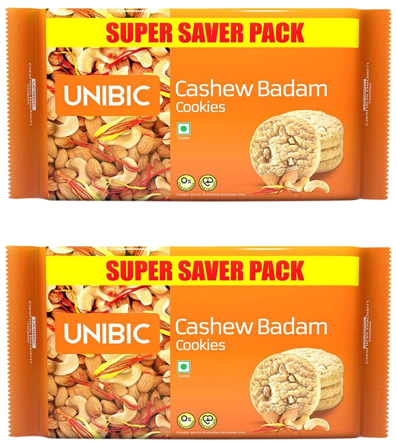 Unibic Cookies, Cashew Badam Cookies, 500gm | Kaju Biscuit | Cashew Biscuits | Almond Cookies | Cashew Badam Cookies | Kaju | Cashew | Badam (Pack of 2)
