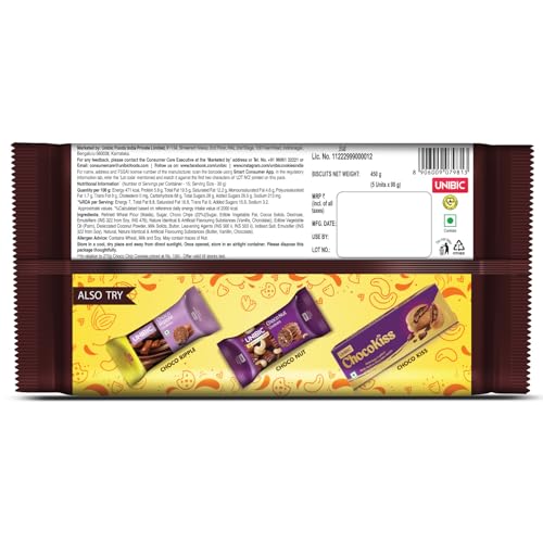 The UNIBIC Choco Chip Cookies is composed of 21 % choco chips which is the most compared to other brands at the given price point. This inclusion of choco chips shows how much UNIBIC knows and loves its customers. You can experience a flavourful choco chip on every bite of the mouth-watering cookie. The unique texture of the crispy UNIBIC biscuit with soft choco chips will pull you to have more every time. A 500 g pack of UNIBIC choco chip cookies can keep you sorted for days and satisfy your sweet cravings. UNIBIC has used premium ingredients to make the cookie biscuits more healthy and flavourful. The use of cocoa butter has not only enriched the cookies with flavour but it has also become an appropriate choice for people with high cholesterol. The addition of desiccated coconuts has added a subtle yet unique taste to the UNIBIC chocolate biscuit cookies. Furthermore it is a 100 % vegetarian product that is ideal for all vegetarians. Make UNIBIC cookies your partner during movie nights with friends and family to enhance the joy multifold. Grab a pack of the delectable UNIBIC Choco Chip Cookies and experience something like never before.