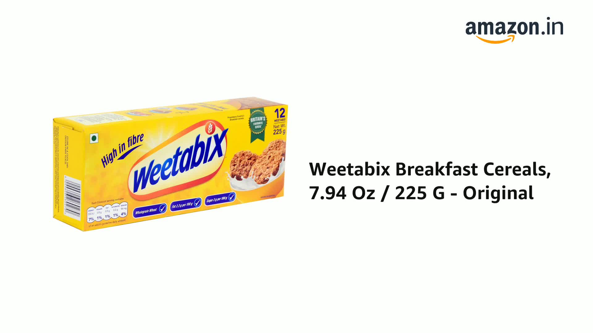Weetabix Whole Grain Cereal Biscuits have a lightly sweet taste with 2g total sugars per serving.