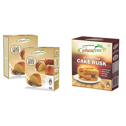 Wheafree Gluten Free Cake Mix (Pack of 2 x 500g each) | Lactose Free | No Added Sugar | Neutral Flavour| Diabetic Friendly | Hassle Free And Quick Baking | Best for Home BakingWheafree Cake Mix has made baking at home easier and hassle free for you. Now you can bake mouth-watering desserts and delight your whole family. With this pack you can bake 3 fresh soft and delicious cakes in an oven or even in a pressure cooker. Wheafree Cake Mix is a multigrain gluten free and eggless premix add any flavour to it and enjoy a rich textured fresh cake. Bring homemade touch to your next celebration/occasion by baking a cake with Wheafree Cake Mix. This pack contains 3 Servings. HOW TO MAKE: In a bowl whisk 5 eggs. Once it is fluffy in appearance add 165g of powdered sugar and whisk. Add 165g of butter to it and whisk again. Add 1/3 rd of cake mix pack (165g) in parts and whisk. Once whisked properly add 2-3 ml of Vanilla Essence/any essence of your choice. Lastly add 10 ml of Vinegar and whisk making sure the batter is of pouring consistency. Bake it for 40-45 minutes at 1600 Celsius in pre-heated oven. Insert a toothpick into the cake to see it is baked properly. FOR EGGLESS In a bowl add 60g of butter + 40 ml of any vegetable oil +120g of powdered sugar and whisk to make it fluffy. Now add 80g of curd and whisk it till the batter is looking smooth. Add 1/3 rd of cake mix pack (165g) in parts and add 2-3 ml of Vanilla Essence/any other flavour of your choice and whisk. Lastly add 10 ml of Vinegar and whisk making sure the batter is of pouring consistency. Preheat the oven at 1600 Celsius and bake it for 40-45 minutes. Insert a toothpick into the cake to see if the cake is baked properly. *To make it softer and rise more you can add 5g of Cake Gel to your batter.Wheafree Gluten Free Cake Rusk (300 Grams) Non-Veg | Tasty Crunchy and Crispy | Best Tea Time Snacks | No Maida | 100% Wholesome IngredientsGluten Free Cake Rusk - 300gmOur Cake Rusk is crunchy and crispy. They are the perfect tea/coffee time snacks.