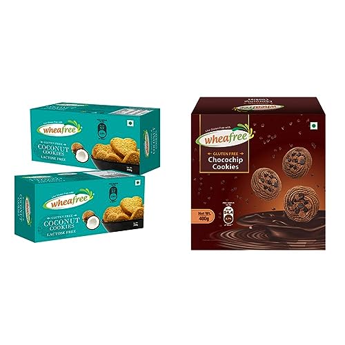 Wheafree Gluten Free Coconut Cookies - Pack of 2 (200g each) | Tasty & Crunchy | Coconut Flavoured Cookies | Best Tea Time Snacks | Egg Free | 100% VegetarianWheafree gluten-free Coconut Biscuits flavoured with a rich aroma and taste of coconut leaves behind a crunchy and crispy sensation after a few chews. These coconut biscuits have now become an ideal companion for tea time. It can be consumed as snacks with morning or evening Tea/Coffee or can be combined with other recipes. It is a very good option for Celiac Patients who can’t stop craving for tasty and healthy biscuits.Wheafree Gluten Free Chocochip Cookies 400gLooking for a scrumptious gluten-free snack that satisfies your sweet tooth? Look no further than Wheafree Gluten Free Chocochip Cookies! Made with only the finest quality gluten-free ingredients our cookies are bursting with a whole lot of chocolate chips for an irresistible taste that will leave you coming back for more. Indulge in the rich chocolatey goodness of our Chocochip Cookies without worrying about gluten as they are free from any gluten-containing ingredients. Perfectly crafted for those who want to enjoy a delicious treat without sacrificing taste or quality. Each bite of our cookies will tantalize your taste buds and leave you wanting more. Our cookies are perfect for those with dietary restrictions or for those who simply want to enjoy a tasty and guilt-free snack. So whether you're looking for a quick snack or just need to satisfy your sweet tooth Wheafree Gluten Free Chocochip Cookies are the perfect choice. Order now and experience the ultimate in gluten-free snacking pleasure! Allergens: Milk Soy