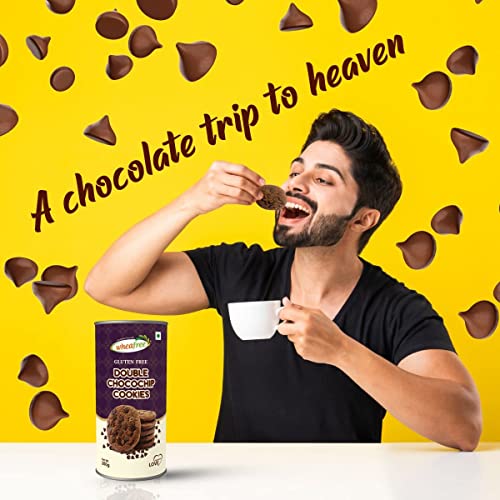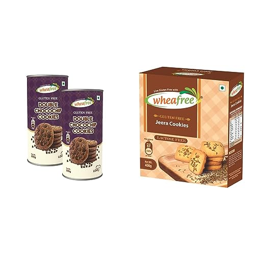 Wheafree Gluten Free Double Chocochip Cookies (Pack of 2 x 200g each) | Tasty Crunchy and Chocolate Flavoured Cookies with even more Chocochips | Best Teatime Snacks | Vegetarian | Handmade with LoveWheafree Double Chocochip Cookies are an indulgent treat for you to experience the rich taste of chocolate in every bite. Our Double Chocochip cookies get ready to take yourself on a delightful chocolicious journey. The Cookies are filled with chocolate chips that burst out of the surface. They are blended into the crunchy cookie in a such a way that every bite will be a mouthful of chocolate. Make the moments special and share the joy with our scrumptious pack of chocochip cookies and delight your loved ones with our irresistibly tempting cookies.Wheafree Gluten Free Jeera Cookies (400g) | Lactose Free | Crispy & Crunchy | Best Tea Time Snacks | 100% Vegetarian and Wholesome IngredientsWheafree Jeera/Cumin Cookies are a favourite tea time snack which is baked to crunchy perfection. Our gluten free cookies are a crispy in texture and have a delicately balanced flavour. They go perfectly well with your hot tea coffee and you can also snack them while travelling.