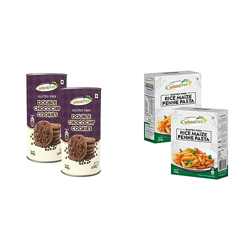 Wheafree Gluten Free Double Chocochip Cookies (Pack of 2 x 200g each) | Tasty Crunchy and Chocolate Flavoured Cookies with even more Chocochips | Best Teatime Snacks | Vegetarian | Handmade with LoveWheafree Double Chocochip Cookies are an indulgent treat for you to experience the rich taste of chocolate in every bite. Our Double Chocochip cookies get ready to take yourself on a delightful chocolicious journey. The Cookies are filled with chocolate chips that burst out of the surface. They are blended into the crunchy cookie in a such a way that every bite will be a mouthful of chocolate. Make the moments special and share the joy with our scrumptious pack of chocochip cookies and delight your loved ones with our irresistibly tempting cookies.Wheafree Gluten Free Rice Maize Penne Pasta - 2 Packs (250g Each) | No Trans Fat | No Cholesterol | Easy to CookWheafree Gluten Free Rice Maize Penne Pasta - 2 Packs (250g each) With Wheafree Rice Maize Penne Pasta you can cook traditional pasta delicacies at home. Get creative in the kitchen with these easy-to-cook gluten free Rice Maize Penne Pasta. You can pair them well with a variety of sauces and vegetables. It is an ideal meal for those who are celiac gluten intolerant vegan and vegetarian families. Simply cook and savour the delicious goodness of Wheafree Rice Maize Penne Pasta How to make 1. Boil the water in a wide mounted container and take ½ litre of water for every 50 grams of dry pasta. 2. To the boiling water add dry pasta ¼ teaspoon salt and ½ tablespoon of oil. Stir the pasta periodically and let it cook for 8- 10 minutes. Take a piece to ensure it has no dry center. 3. Drain the water & rinse in cold water. Smear the drained pasta with 1/2 teaspoon of oil. 4. In a separate pan heat some oil and sauté your choice of vegetables and prepare pasta sauce. 5. Then add the already boiled pasta and stir with light hands. Cooks it for a few minutes only.