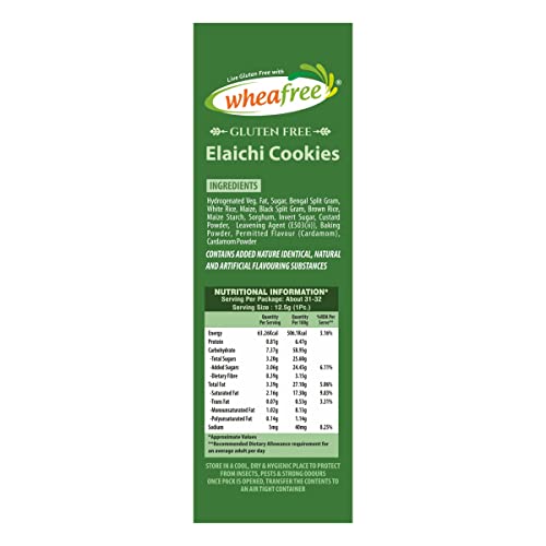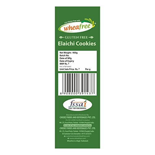 Wheafree Gluten Free Elaichi Cookie 400g Pack | Lactose Free | No Maida | Best Tea Time Snacks | 100% Vegetarian and Wholesome Ingredients