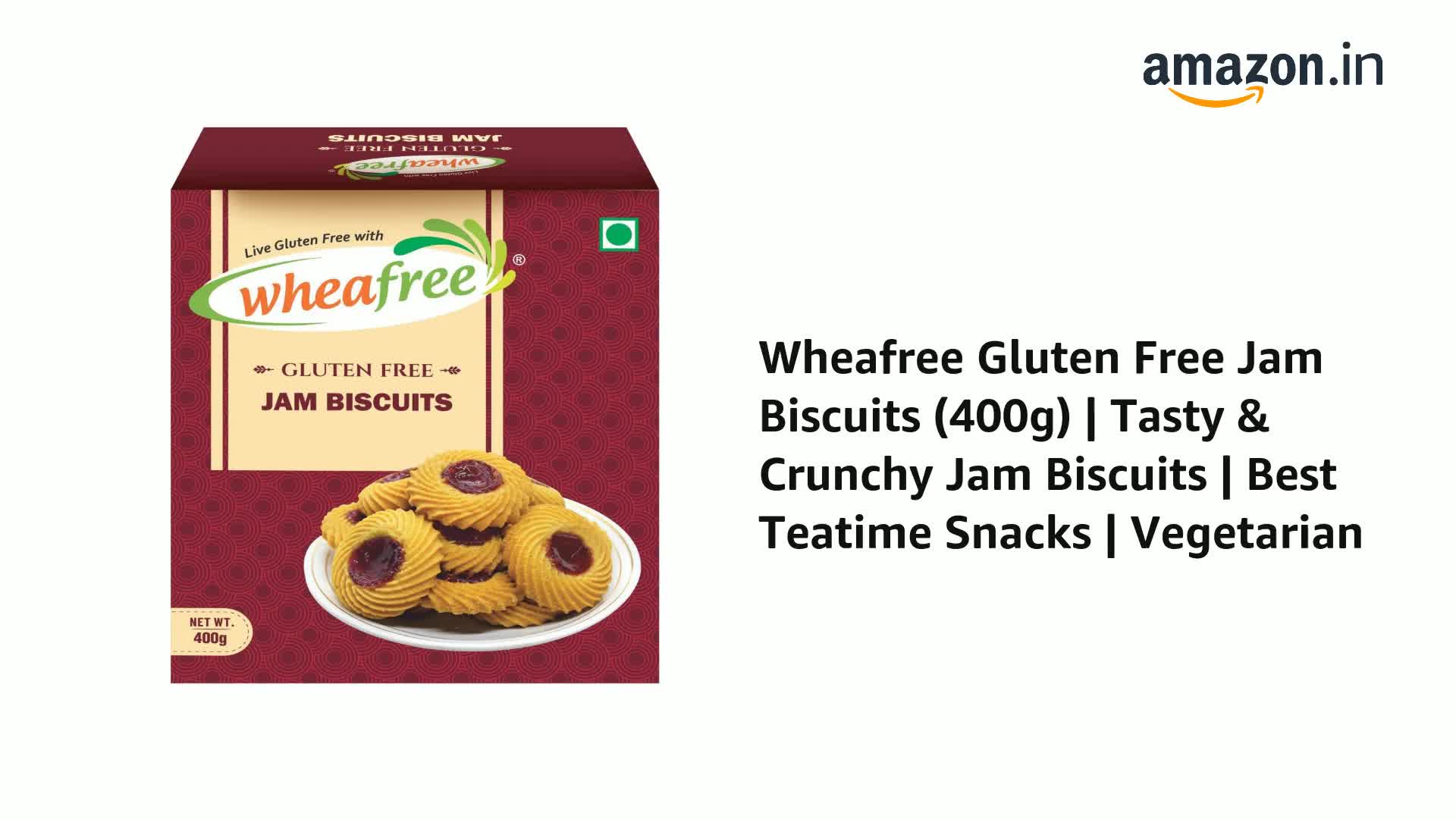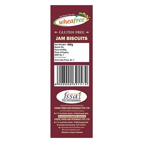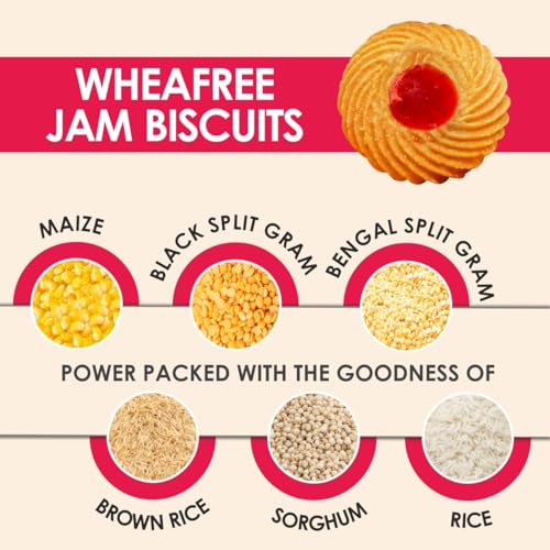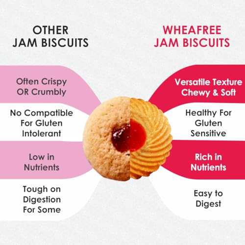 Wheafree Gluten Free Jam Biscuits | Mixed Fruit Pulp Filled Cookies | Tasty & Crunchy Snacks | Perfect Tea-Time Treat | 400g Vegetarian Biscuit Pack