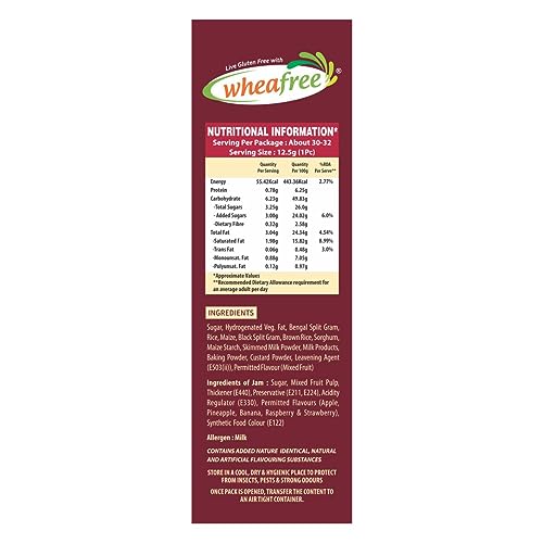 Crafted with Gluten-Free Ingredients: IIndulge in the delightful taste of our mixed fruit jam perfectly blended with real fruit pulp from apples pineapples bananas raspberries and strawberries. These biscuits are designed to be safe and enjoyable for anyo