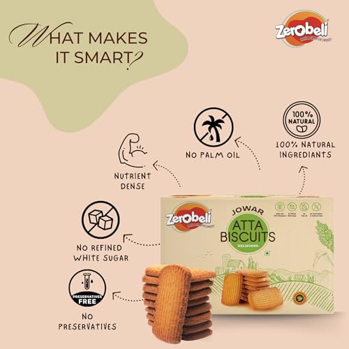 HomeGrocerySnacksCookiesZerobeli Premium Jowar Atta Digestive Biscuits with Elaichi - 375g | Healthy Nutritious and Delicious Cookies | Best Tea Time Snacks | 100% Vegetarian | No Refined Sugar Palm Oil Preservatives or Colors