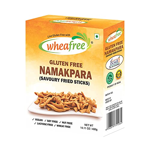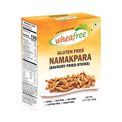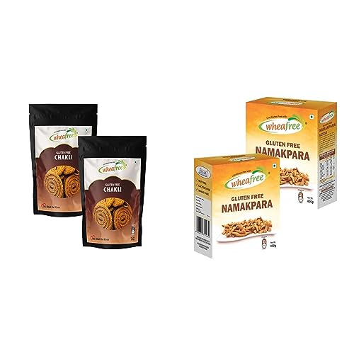 Wheafree Gluten Free Chakli (Murukku) (Pack of 2 x 400 g) | Lactose Free | Delicious Ready to Eat Indian Snacks | Tasty Crispy and Crunchy Savory Snacks | Best Snacks for Tea/CoffeeWheafree Chakli is a crispy and delicious savoury Indian deep fried snack. It is made with a combination of desi masalas and has a unique flavour. Our Chakli is a perfect gluten free snack that you can enjoy at any anytime and anywhere. Wheafree Chakli is an absolute delight for an evening snack. Our Chakli is made with gluten free ingredients and does not contain wheat or maida making it easy for you to digest.Wheafree Gluten Free Namakpara - Pack of 2 (400g each) | Your Perfect Tea Time SnackWheafree Namakpara is crispy delicious savoury Indian deep fried snack. They are made with a combination of desi masala and has a unique flavour. Our Namakpara is a perfect snack that you can enjoy anytime and anywhere. Wheafree Namakpara is an absolute delight for an evening snack. You can enjoy it yourself and offer it to your guests. Our Namakpara is 100% gluten free and doesn’t contain maida or wheat making it easy for you to digest.