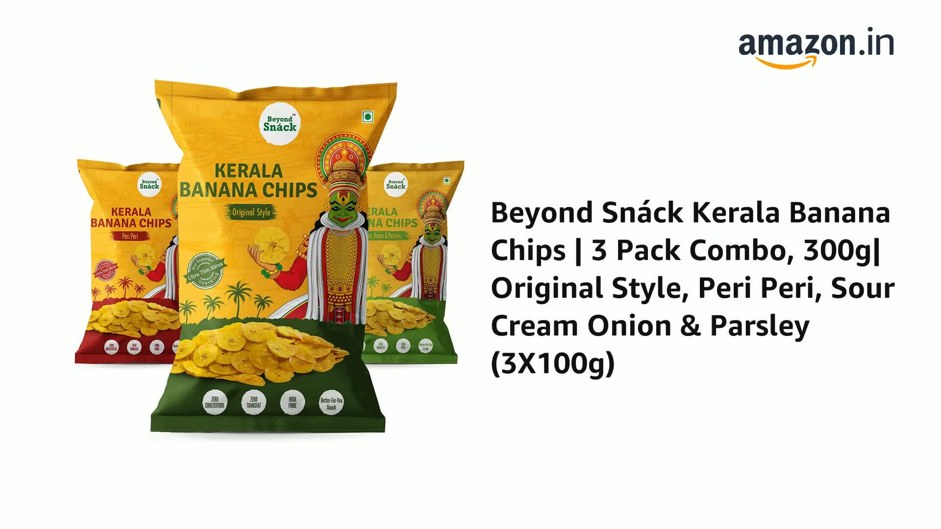 Beyond Snack banana chips is a new age Authentic Kerala Style Banana chips made from an exclusive variety called Nendran which grows in Kerala. We take special care to responsibly craft it for a superior snacking experience for YOU! ALL CLEAN & SAFE NOTHING ARTIFICIAL - We decided our farm fresh bananas should not be adulterated with anything artificial and synthetic. So we specifically chose all our ingredients that are easy to understand and extracts of natural raw spices and condiments. All Natural & absolutely NO Artificial colours or flavours . PERFECT CRISP - Each banana is passed through a precision slicer which ensures the same thickness in all chips these banana slices are cooked to perfection at standards identified for the best snacking experience. Hence each and every chip is at the right crispness level. QUALITY OUR PROMISE - Each chip finds you after 3 walls of quality analysis - before cooking post-cooking and post seasoning. This ensures only the best banana wafers will find you. Our packing specifications are maintained at export level standards which ensure 6 months of shelf life for. NO MORE HARD CHIPS - Our chips are suitable for any age group. It is an easy bite and still gives that crispness for the soulful snacking experience. FULL OF FLAVOURS JUST LIKE OUR LIFE - Beyond Snack banana chips comes in 3 really exciting flavors. Each bite will be a taste festival for our palate. 1)Original Style - Authentic Kerala Chips in its original style. Ultra-thin wafers make it light and classy in the way we always loved it. 2) Peri-Peri -A spicy getaway with African Piri-Piri chili and exotic ginger. It is hot but totally worth it. 3) Sour Cream Onion & Parsley - An enticing Sour cream blended with onion and garnished with fine parsley. It's smooth and creamy with its delightful aroma.