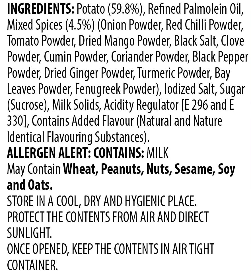 Bikano Chips Chatak Masala is a sensational snack that exemplifies the bold and vibrant flavors. These thin slices of potato are not just any ordinary chips – they are thin crispy delights that deliver a delightful crunch with every bite. We start with the finest quality potatoes carefully sliced to achieve the perfect thinness that allows for a light and crispy texture. Each chip is then generously seasoned with our special Chatak Masala blend creating a symphony of spicy and tangy flavors that will awaken your taste buds.