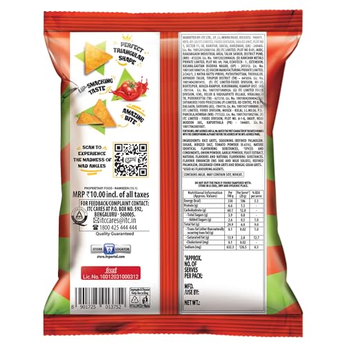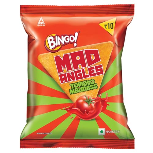 Bingo Mad Angles Tomato Madness 36.5 Gram Pack Tangy & Crunchy Chips Perfect For Snacking - Tomato