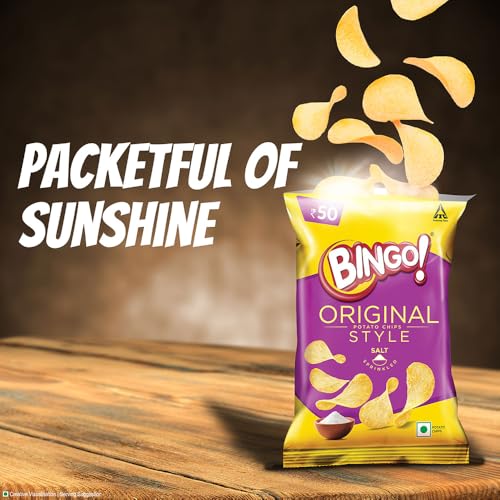 Whoever looked at the potato in the ground and decided to eat it was a true visionary. Because if it wasn't for him/ her centuries later we wouldn't have had the brilliant idea of making potato chips! Tear open the chips packet of Bingo! Original Style Salt Sprinkled and enjoy some yummy salted chips. Salted potato chips have always been a part of our lives; even our birthday parties were incomplete without them. So Bingo! brings you your happy childhood in the form of Bingo! Original Style Salt Sprinkled. Flat cut potato chips which are made from handpicked golden quality potatoes are sliced thinly to give you chips lighter than air. These chips are then cooked carefully to give you the right amount of crunchiness and sprinkled evenly with salt. No loud explosive flavours just the perfect amount of salt to lighten your mood and remind you of sunsets by the beach. Whether you're bored in a meeting watching your screens buffer. They are incomplete without a bag of salted chips by Bingo! Original Style by your side.