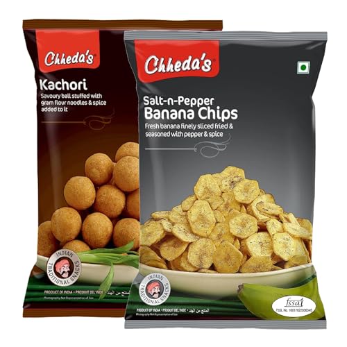 Chheda's - Salt N Pepper Banana Chips (350 Gm) and Dry Kachori (300 Gm) | Banana Wafers | Indian Namkeen | Tasty Snacks | Ready to Eat - Combo Pack