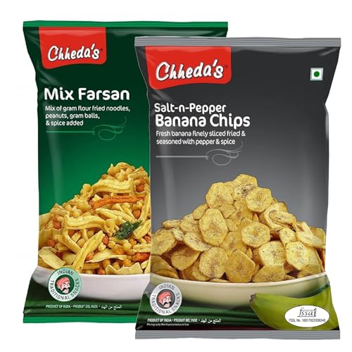 Chheda's - Salt N Pepper Banana Chips (350 Gm) and Mix Farshan (300 Gm) | Banana Wafers | Indian Namkeen | Tasty Snacks | Ready to Eat - Combo Pack