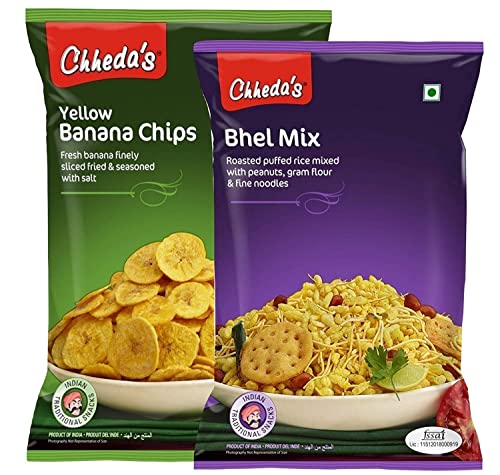 Chheda's - Yellow Banana Chips (350Gm) and Bhel Mix (300Gm) | Banana Wafers | Indian Namkeen |Ready to Eat - Combo Pack