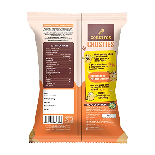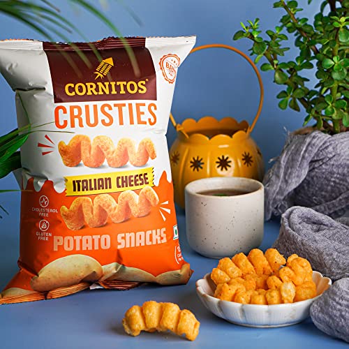 When you are in the mood for some munching but also looking for a healthy option you can’t go wrong with Cornitos Crusties Potato Snacks. The funky zigzag shape and the punchy Italian Cheese flavour add a snacky spin to Potato. The complex flavours of rich Italian Cheese and the creamy yet crunchy texture of Potato Crusties will surely make your tastebuds go Mamma Mia! Savoury and crunchy the Potato Snacks are baked not fried and are just right for a happy and guilt-free crustying any time of the day!