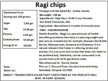 We believe that a healthy person is always a happy person. Here is a bundle of products rated the best by our consumers and we recommend you to try it without thinking twice! You'll get the following snacks in this box - ragi chips bhakarwadi oats peri peri quinoa puff & soya corn (50gm each) These packed with the nutritional values of raw veggies and the taste of your favorite munchies snacking has never tasted so good. Our snacks are always made fresh after you