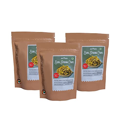 Evolve Healthy Snacks Pack of 3 | All Natural SOYA Chips | Rich in Protein and Minerals | Vacuum Fried | Guilt Free Wholesome Goodness | Pudina Flavouring