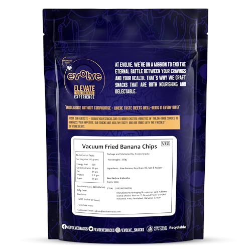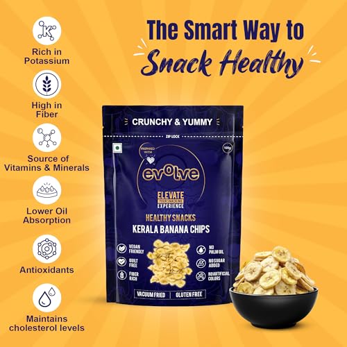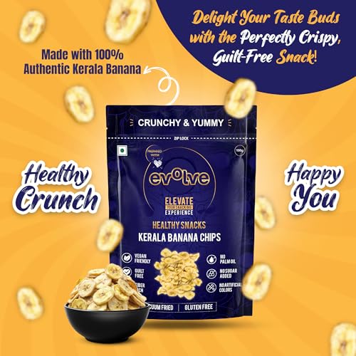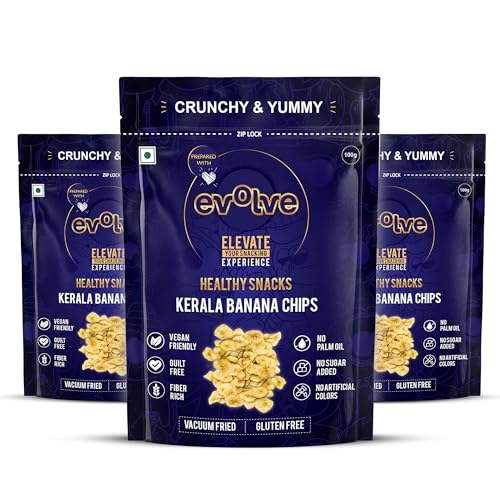 Evolve Kerala Banana Chips Healthy Snacks for Kids Adults | Gluten-Free Vegan No Sugar or Colors Vacuum Fried | Ideal for Weight Loss -100g Pack of 3