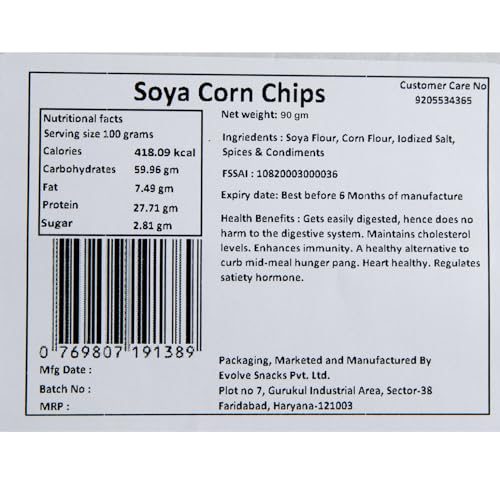 • Ingredients: Evolve Soya Corn Chips are crafted with soya flakes corn flakes rice bran oil and Indian masala spices. These chips offer a wholesome and satisfying snacking experience.