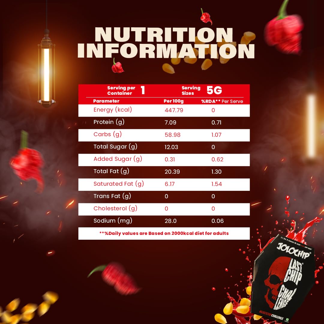 HomeGrocerySnacksChipsJolochip Last-Chip-Challenge (Pack of 1) | Extreme Spicy Tortilla Chip | Hottest Chip in the World | Ultimate Hot Snack | 5 Grams