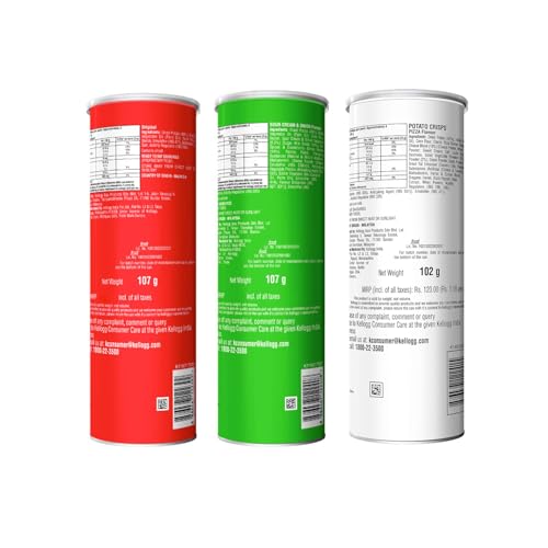 Kellogg's Pringles Potato Chips Combo 316 grams | Combo of Original (107g) + Sour Cream & Onion (107g) + Pizza (102g) | Crispy Snack for Movie Night & Sports Binging | On-the-Go Can