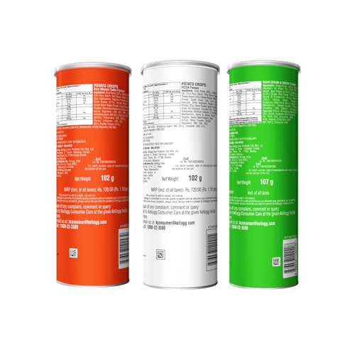Kellogg's Pringles Sour Cream & Onion + Desi Masala Tadka + Pizza Flavour(107gram each) Masala Salted