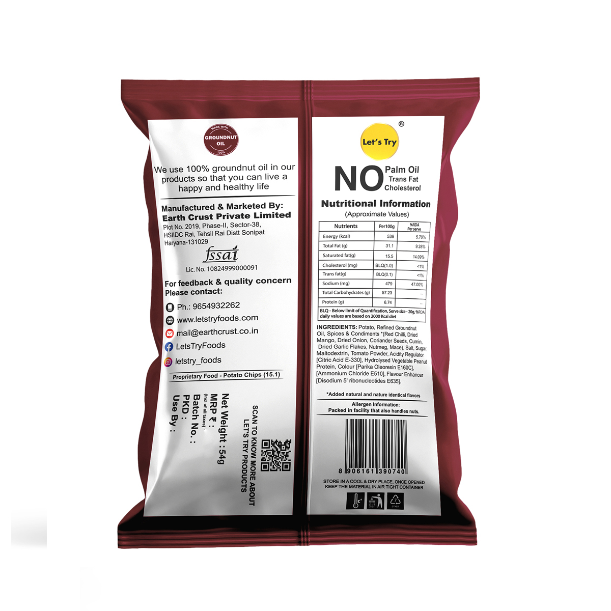 At Lets Try, we believe healthy snacking can be fun too. We follow traditional methods to make all our snacks, just like your grandma used to. We use 100% groundnut oil. No preservatives, No artificial flavors, or colors, no trans fats or cholesterol
