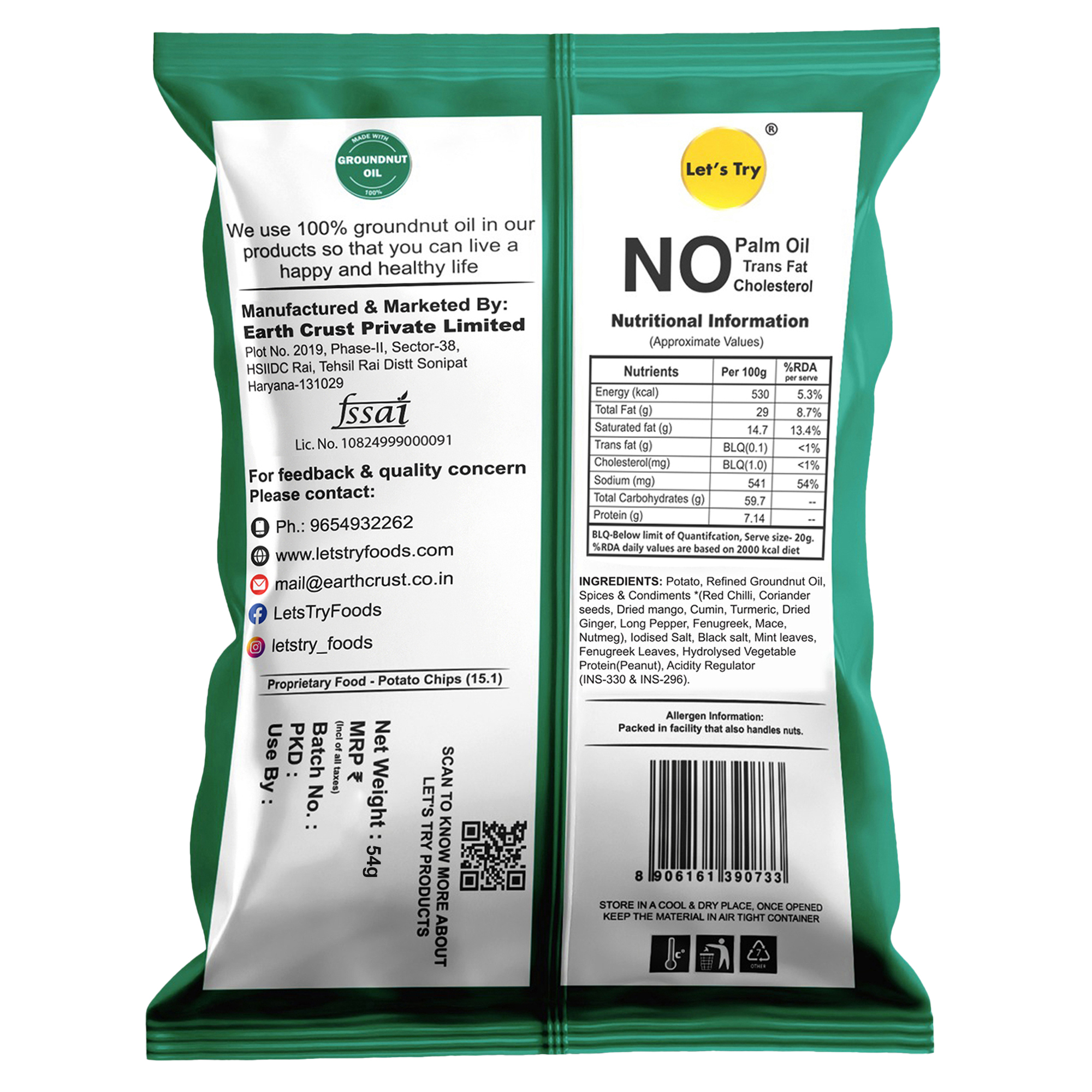 At Lets Try, we believe healthy snacking can be fun too. We follow traditional methods to make all our snacks, just like your grandma used to. We use 100% groundnut oil. No preservatives, No artificial flavors, or colors, no trans fats or cholesterol