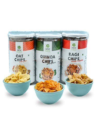New Tree Gift HamperThe Healthy Chips Combo Ii Oats Chips Peri Peri-225Gm Ii Ragi Chips-Chaat Masala-225Gms Ii Quinoa Chips Jalepeno- 225Gms Ii Total Weight-675Gms