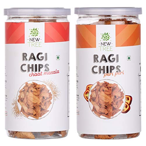New Tree Healthy Snack Combo || Ragi Chips Chaat Masala 225gm || Ragi Chips Peri Peri 225gm || Combo Pack of 2 || Combined Weight 450gm || Gluten Free and Spicy Snacks