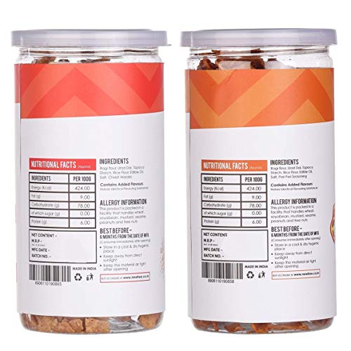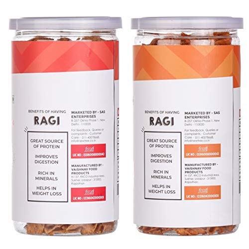 • Quantity: Ragi Chips Chaat Masala 225gm Ragi Chips Peri Peri 225gm Combined Weight: 450gm.