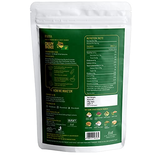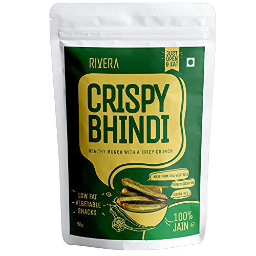 Rivera Crispy Bhindi (Jain)Okra Chips Vegetable Snacks Vacuum Cooked So No Need To Cook Ready To Eat (50G Each) (Pack of 5)