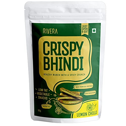 Rivera Crispy Bhindi (Lemon Chili) Okra Chips Vegetable Snacks Vacuum Cooked So No Need To Cook Ready To Eat (50G Each) (Pack of 5)