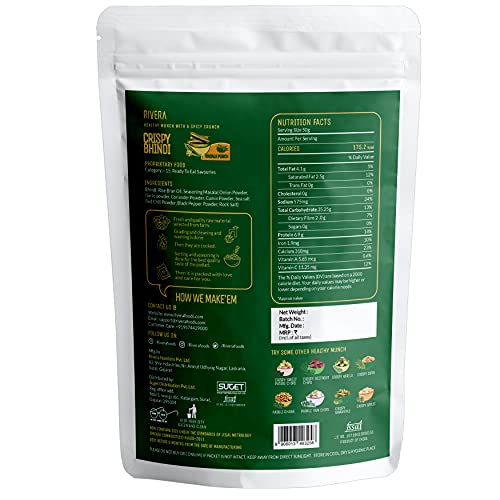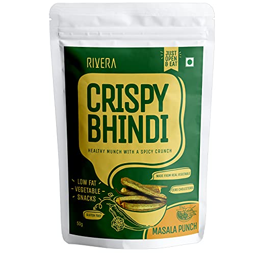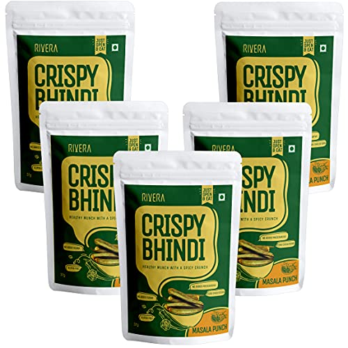 Rivera Crispy Bhindi (Masala)Okra Chips Vegetable Snacks Vacuum Cooked So No Need To Cook Ready To Eat (50G Each) (Pack of 5)