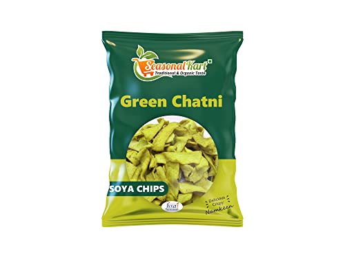 Seasonal Kart Green Chatni Soya Chips| Pudina Flavouring I Crunchy Cracker 100% Vegan I Low Calorie Our soya twisters chips contain the goodness of soya which is rich in protein and low in cholesterol. They're also low in sodium and will keep your junk food blues at bay.