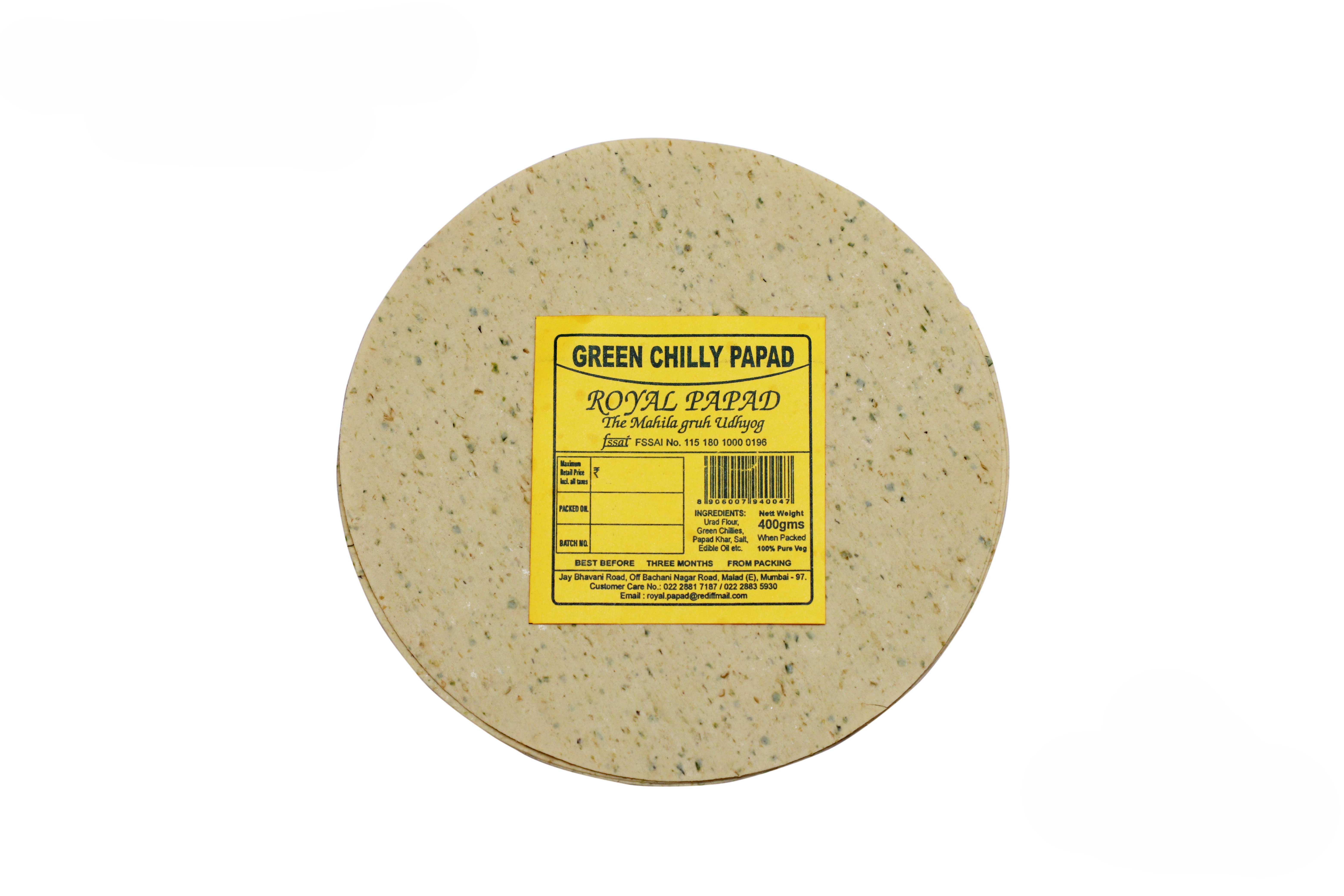 Royal Papad Green Chilly Papad - 400 Gms.
