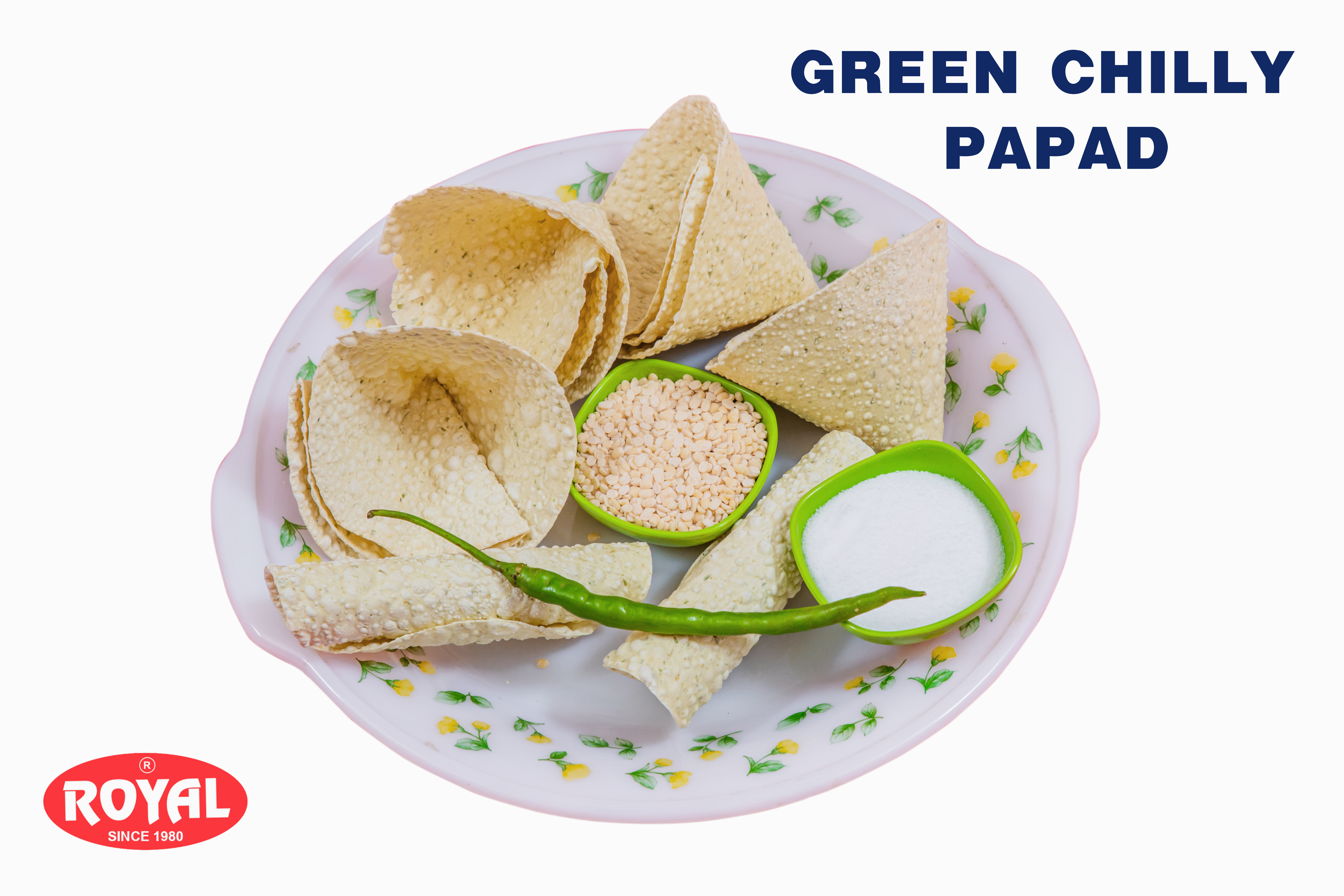 INGREDIENTS : URAD FLOUR, GREEN CHILLIES, PAPAD KHAR, SALT, EDIBLE OIL,ETC