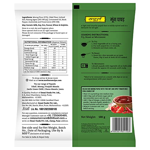 Mother's Recipe Moong Papad 5" Pouch, 180 g
