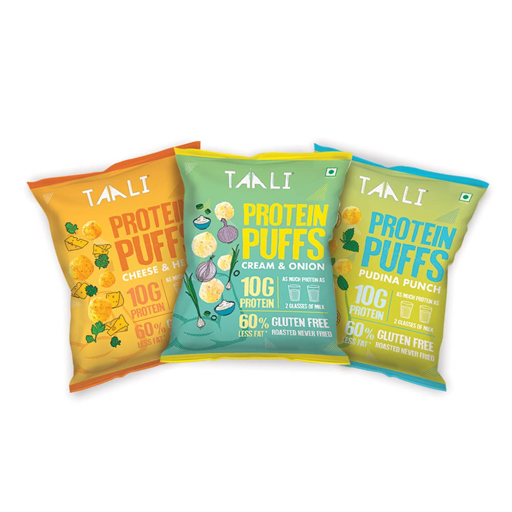 Taali Jowar & Protein Puffs | 60 gm (Pack of 3) | Pudina Punch Cheese & Herb Cream & Onion | Healthy Roasted Tasty Snacks Ready to eat | 100% Veg. Gluten free products No Cholesterol No Trans-Fat