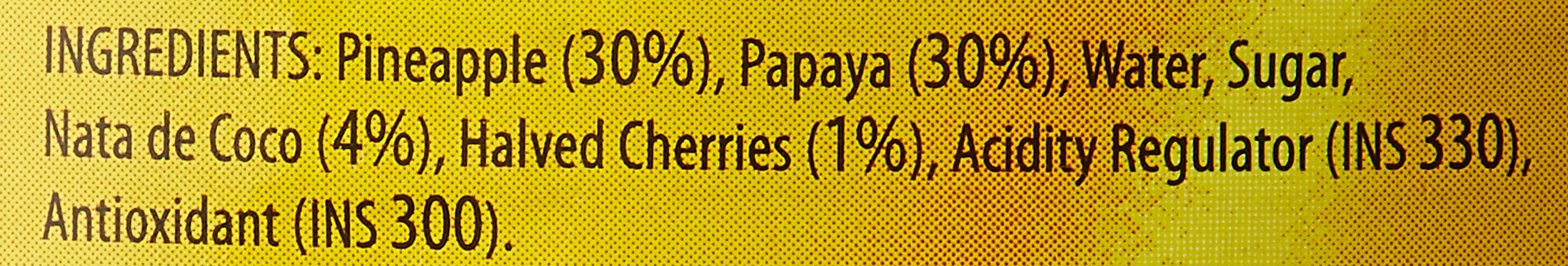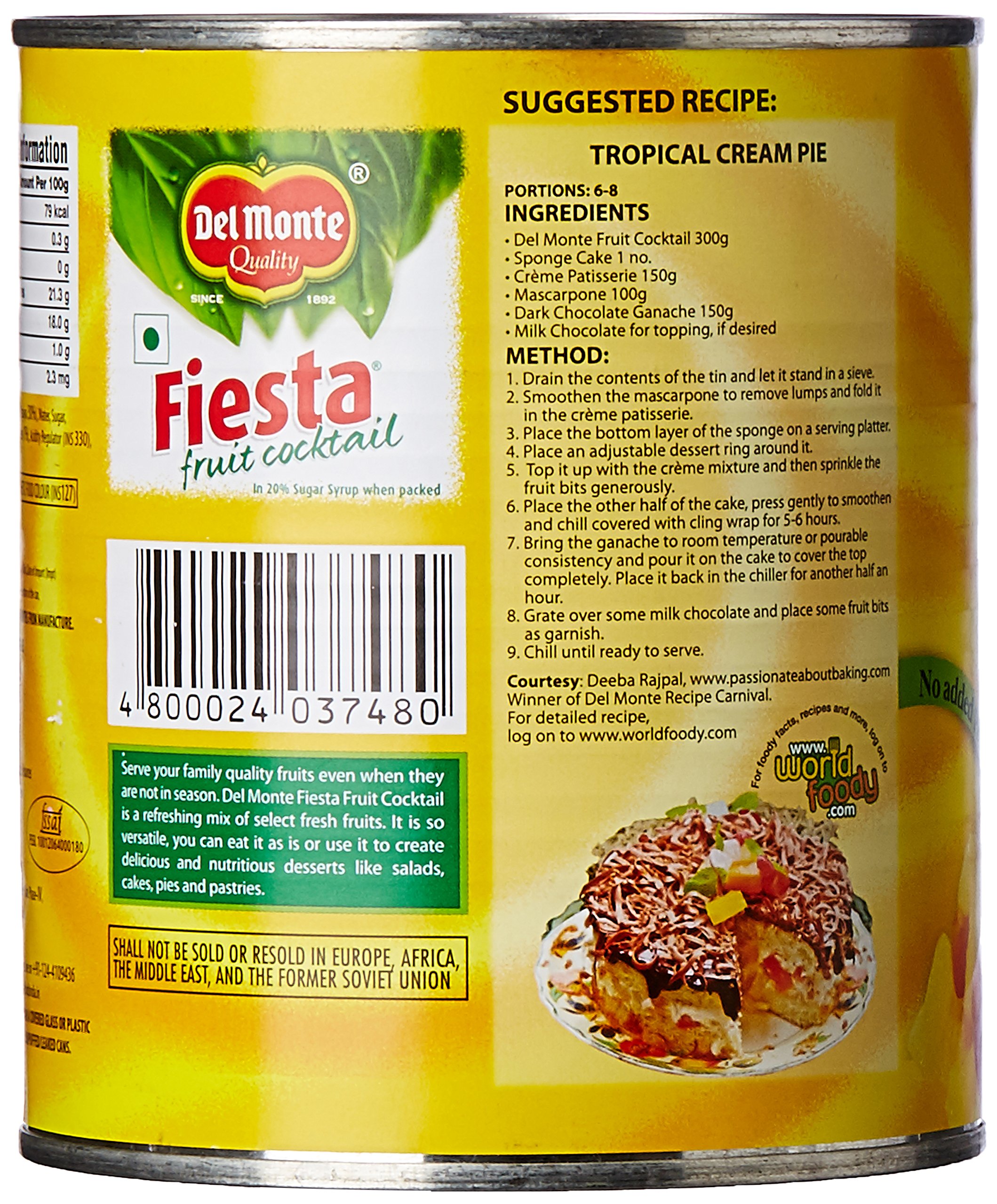 A Del Monte fruit cocktail contains perfectly ripe peaches pears grapes pineapples and cherries all sliced diced and mixed in a light syrup. With no preservatives artificial flavours or sweeteners a Del Monte fruit cocktail is a fat-free snack for you and the whole family. You can rely on Del Monte peaches pears and other fruits to be selected from nature's highest-quality fruits.
