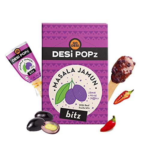GO DESi POPz with Bitz | Chilli Guava | 50 Pcs | Fruit Snacks 400 gmYour favourite DESi lollipops just got bigger and better with the new DESi POPz with Bits- Chilli Guava: A spicy-sweet lollipop featuring a classic DESi combo- Ripe pink guavas and Chilli. What's more every bite hides a special surprise- real guava pieces!!!GO DESi POPz with Bitz | Masala Jamun | 50 Pcs | Fruit Snacks | Java Plum | 400 gmYour favourite DESi lollipops just got bigger and better with the new DESi POPz with Bits- Masala Jamun: A mouthwatering chatpata treat featuring the goodness of fresh Jamuns jaggery DESi masala and some extra love. Now with real jamun fruit bits for some extra DESi indulgence!