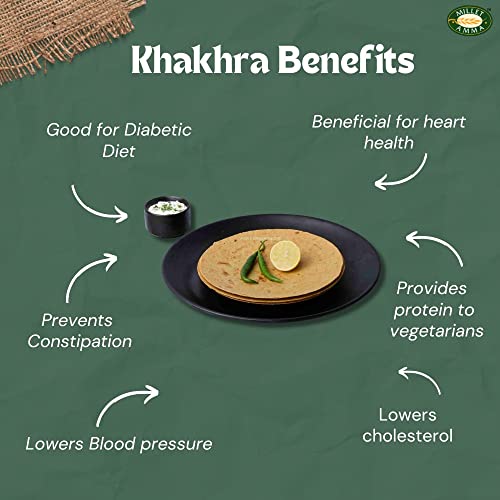 • Unlike other khakhras Amma's bajra khakhra is baked and not fried in oil. Crunchy and melt in your mouth this khakhra is perfect for guilt-free binging.