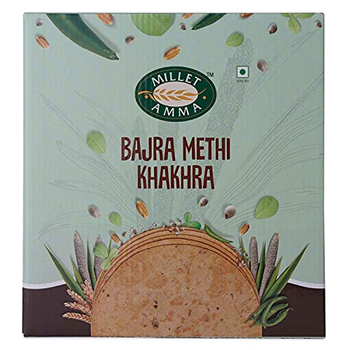 Millet Amma Bajra Methi Khakhra - Pack Of 2 (180g each), Baked, No Added Preservatives, Full Of Fiber, 70% Millet Content, Ready To Eat, Millet Snacks, Healthy Foods, Gluten Free, Vegan.