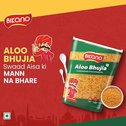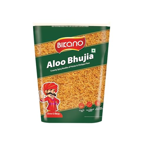 Enjoy the irresistible crunch of Bikano Aloo Bhujia a classic Indian snack made from fresh potatoes mixed spices rice flour and chickpea flour. This savory treat is perfect for all occasions from family gatherings to casual snacking. Crafted with care to ensure the highest quality and freshness it's a delicious crowd-pleaser that enhances any moment with its bold flavors and crunchy texture.